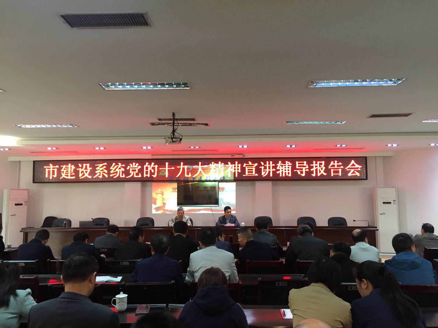 党的十九大胜利召开后,市建设局党委高度重视,强化责任,行动迅速,把学习宣传贯彻党的十九大精神,作为当前和今后一段时期的首要政治任务抓紧抓好抓实。通过组织全系统党员干部收听收看大会盛况、召开党委中心组学习会专题传达学习、全系统党员干部大会动员部署、支部会集中研讨、邀请专家教授宣讲辅导等多种形式传达学习宣传党的十九大精神,持续掀起市建设系统学习宣传贯彻落实党的十九大精神的热潮。