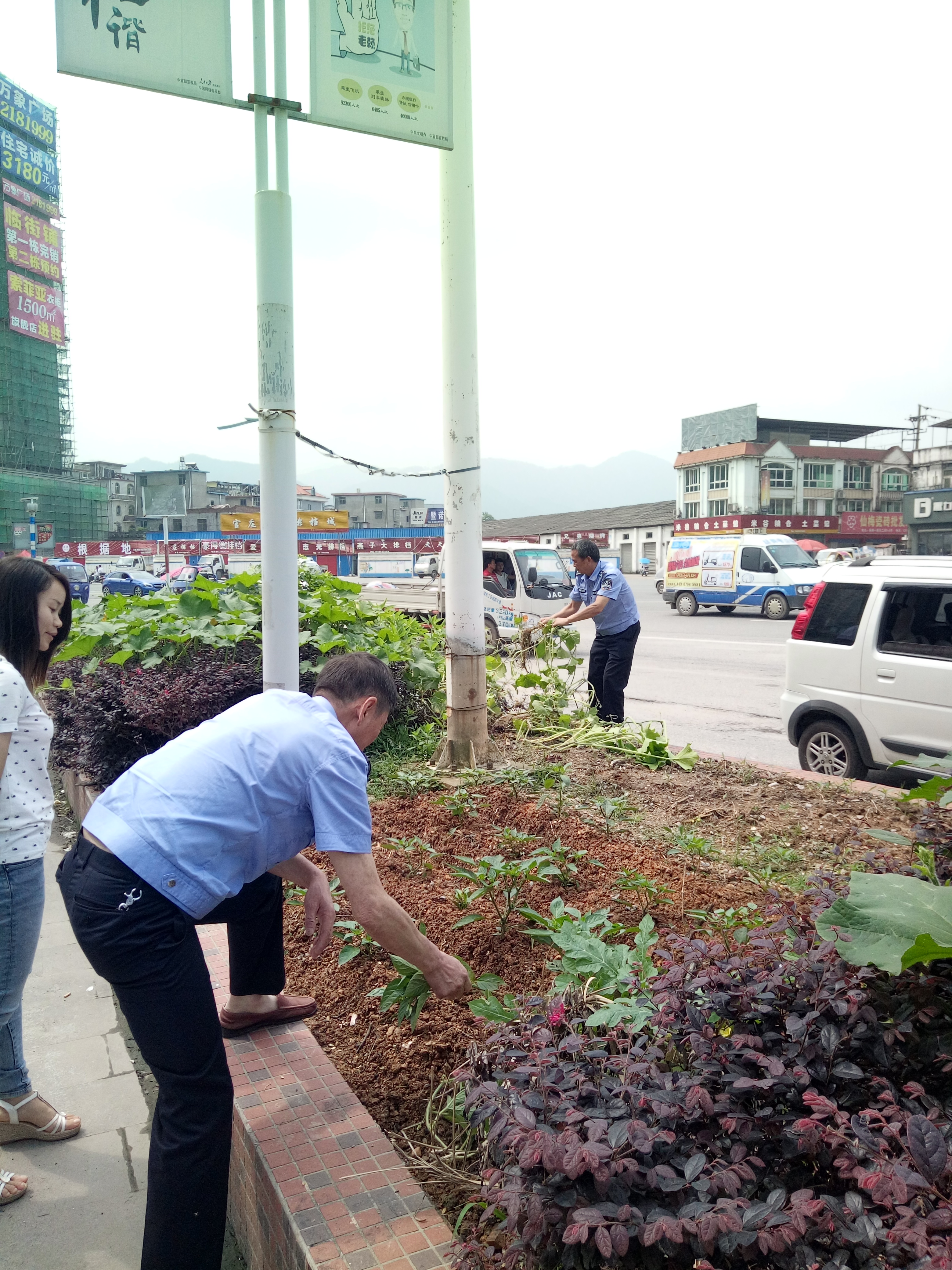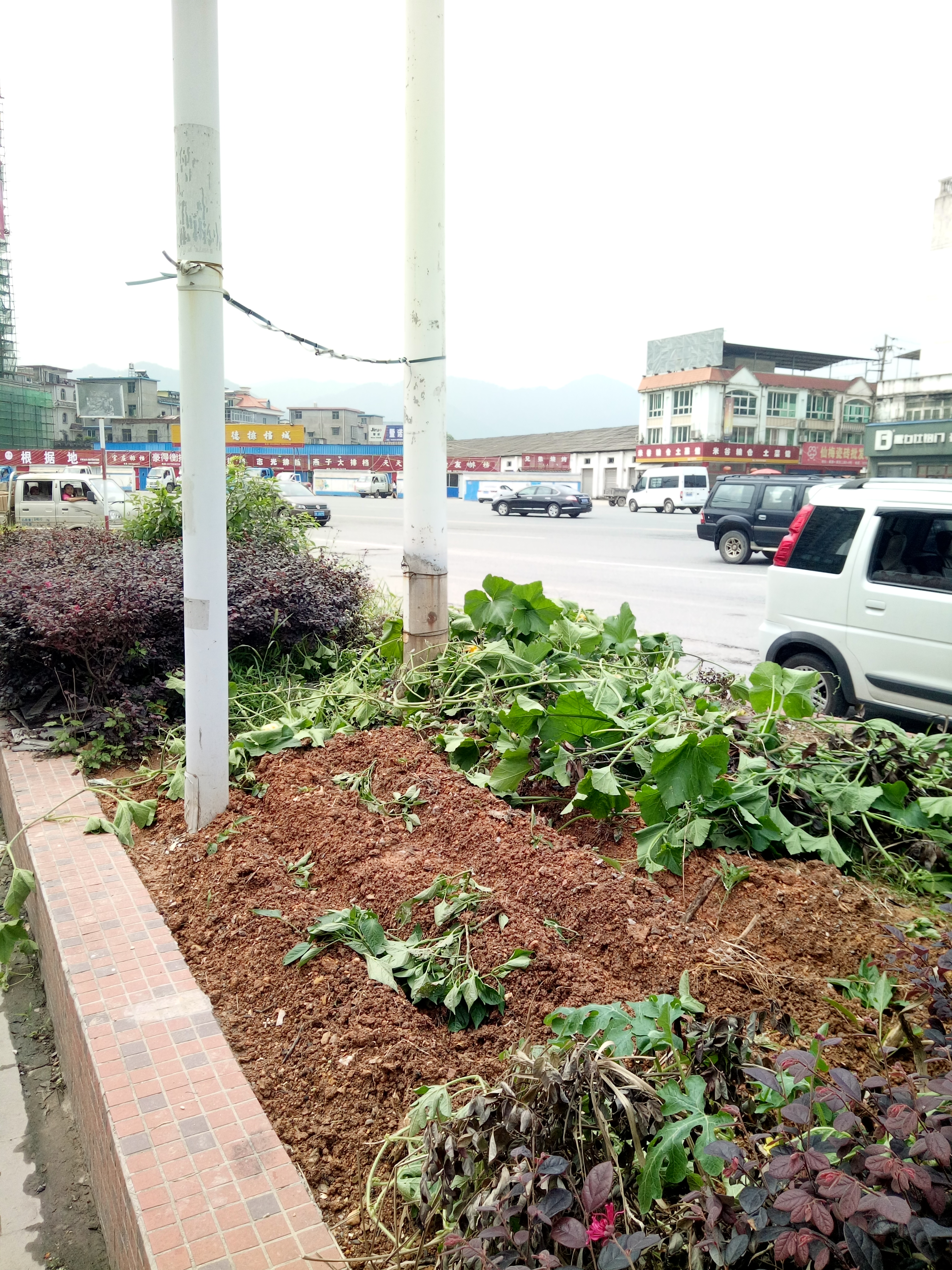 为维护市政府美化城市,进行改造道路绿化提升城市品质的成果,市园林绿化监察队对违法在绿化岛上开荒种菜的行为进行清除。
